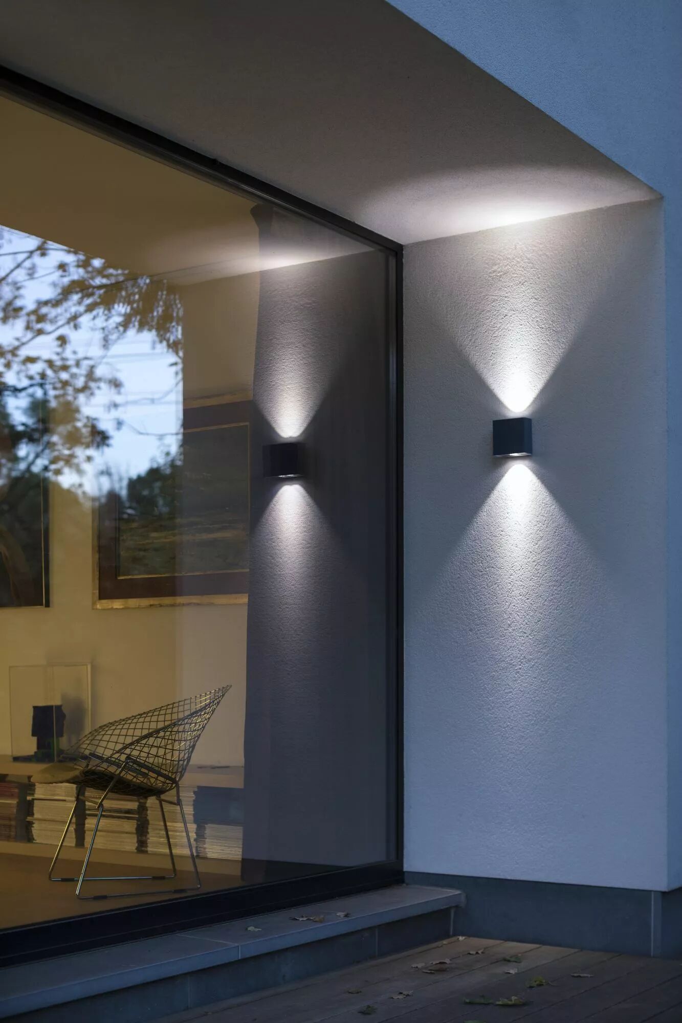L'applique Klint permet de mettre en valeur de sa façade grâce aux faisceaux de lumière supérieur et inférieur. Produit personnalisable pour ajouter un logo ou numéro d'adresse.