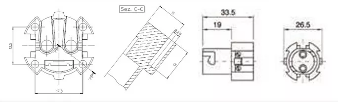 Douille monobloc pour lampe BA15d, 250V 2A T200°C thermoplastique noire, connexions à vis Référence orbitec : DO3917