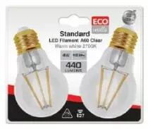 Ecowatts - Standard A60 Filament LED (2 Pcs) 6W E27 2700K 760Lm Claire (998655) équivalent 75 watts