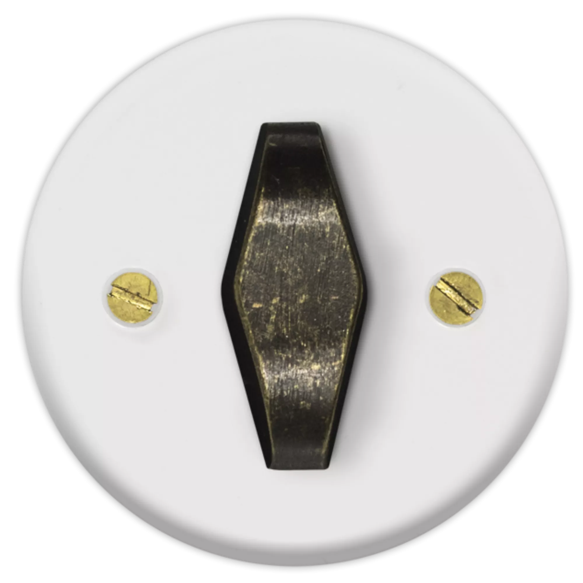 Accueil > Matériel électrique > Prises et interrupteurs > Gamme Rétro - Obzor > Enjoliveur blanc + poignée patinée BTA (DSR 00-01-2-03-0-0-00)
