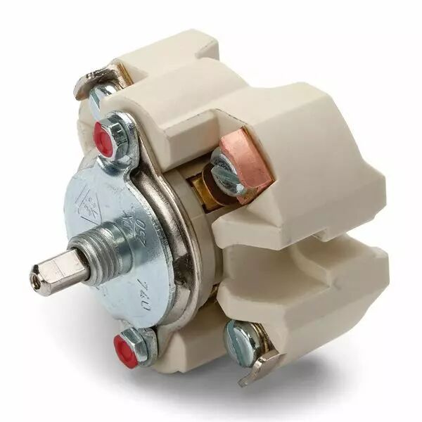 A souligner aussi : nos commutateurs rotatifs sont encore de vrais commutateurs rotatifs où les contacts sont fermés ou ouverts par le mouvement de rotation. De nos jours, cela ne va pas de  soit et certains interrupteurs rotatifs cachent en fait un interrupteur  à bascule dont la bascule est actionné par une manette tournant.  La différence n’est non seulement perceptible mais aussi audible !