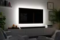 Pour des effets lumineux spectaculaires dans le salon, le kit MaxLED 250 TV-Comfort RGBW avec alimentation, Strips LED sans revêtement et télécommande garantit un éclairage indirect dans toutes les directions derrière le téléviseur. La commande intuitive permet le choix instantané des couleurs ou le réglage d'une lumière de confort agréable grâce à la LED supplémentaire blanc chaud. Pratique : Avec l'alimentation électrique propre, vous pouvez activer la lumière indépendamment de la TV. Avec ses sections de Strips et les 4 coins filigranes, le kit est spécialement adapté pour une TV de 65 pouces. Flexible pour toute forme de boîtier : le câble d'alimentation extra long et la possibilité de raccordement aux 4 coins ou entre les Strips individuels permettent une pose aisée sur le pourtour du dos de la TV. Grâce au dos adhésif et au système de raccordement, le montage est facile et sans outils.