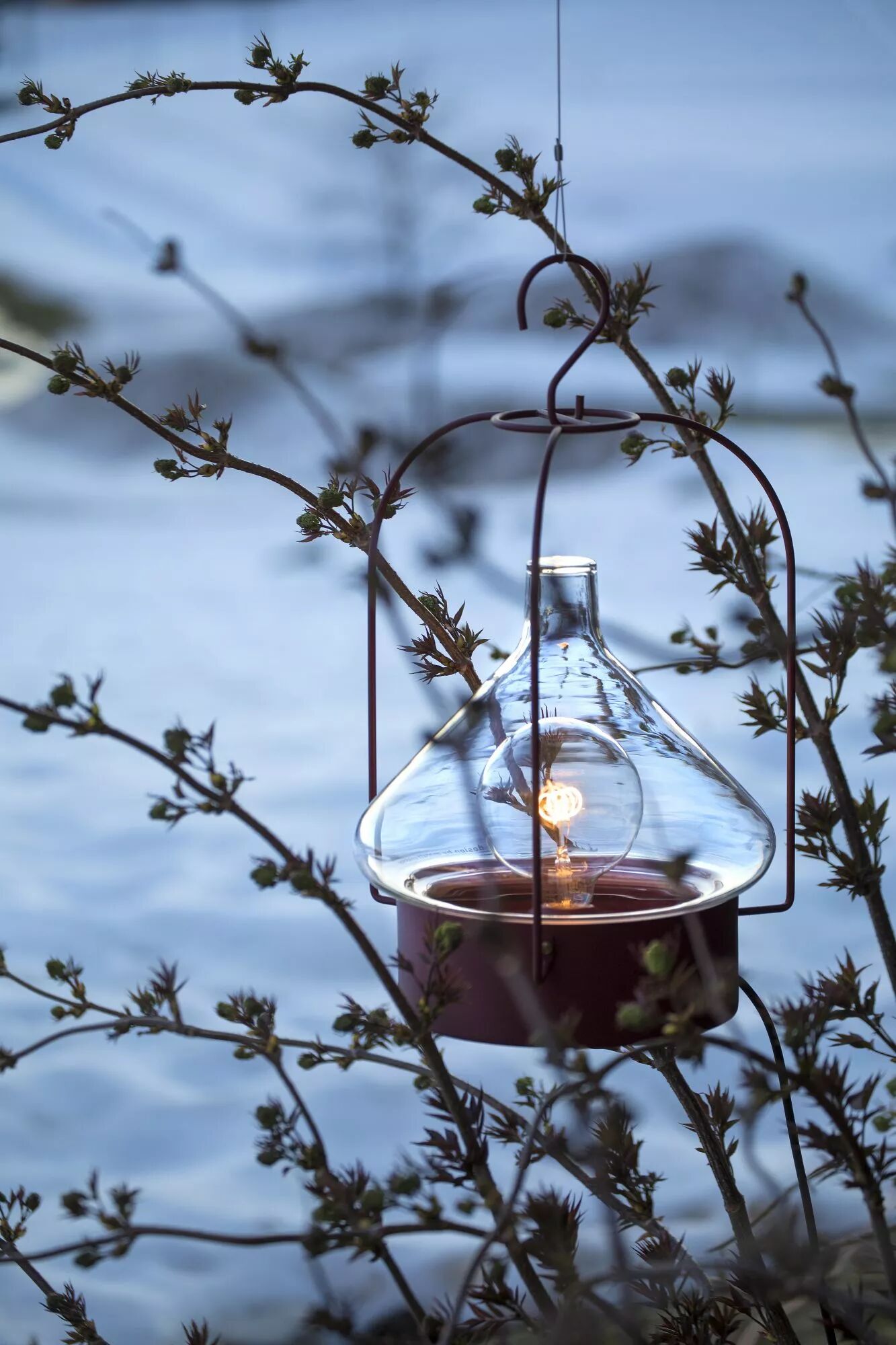 La Hutte rend hommage aux esprits aventuriers en mettant en avant la forme emblématique de la hutte et son imaginaire associé. Sa base en métal associée à son verre soufflé transparent apportent une présence réconfortante à l'extérieur.