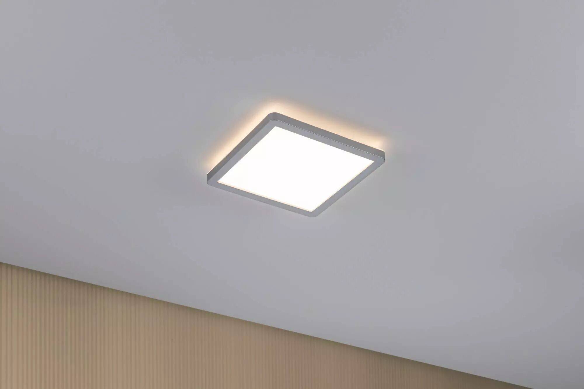 Avec une puissance de 11,2W, le panneau LED carrée Atria Shine de couleur Chrome mat et mesurant 190x190mm est idéal pour l'éclairage de base des salons, chambres ou cuisines. La lumière blanche et chaude du panneau permet d'éclairer la pièce de manière uniforme et étendue. La technologie Backlight supplémentaire crée une atmosphère de bien-être particulière et donne comme l'impression que l'éclairage du panneau flotte. Grâce aux clips de fixation rapides et à la fermeture à vis spéciale, le panneau, avec sa hauteur de montage ultraplate de 28 mm, est très facile à installer.