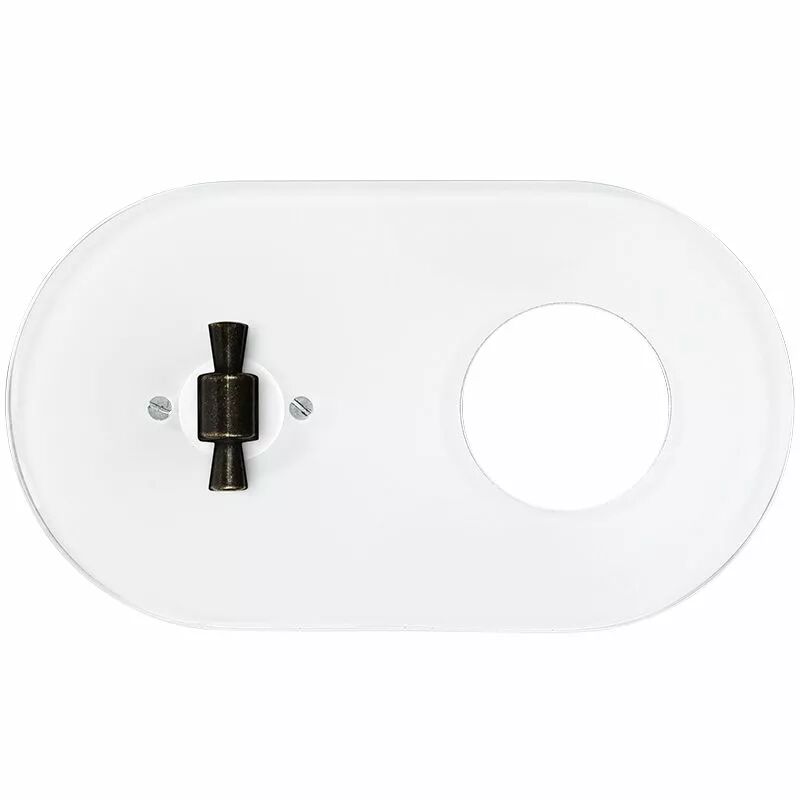 Plaque 2 postes en verre blanc interrupteur rotatif et prise + manette patine type OBZ (DSR 00-00-1-03-K-2-30)