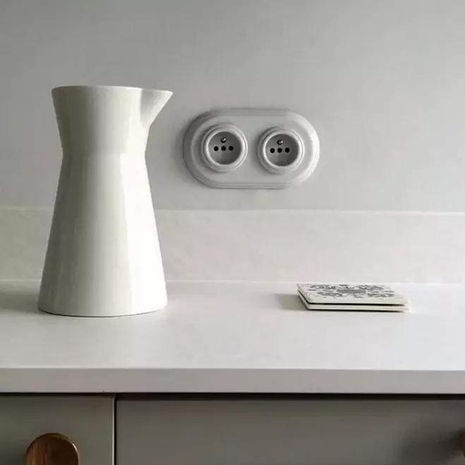 Prise 2P+T en porcelaine blanche de la collection Garby Colonial de Fontini (31208172)