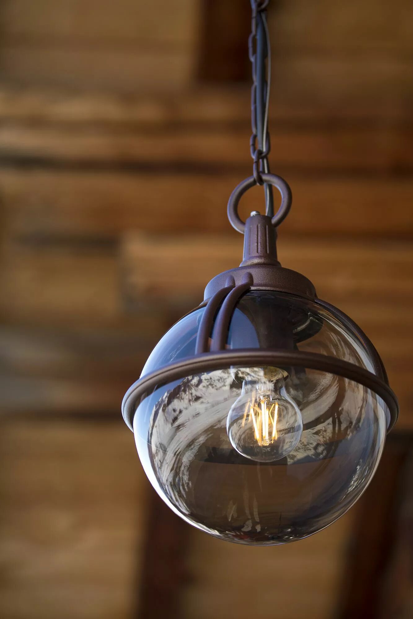 La sphère de ce luminaire Boréal apporte une lumière réconfortante pour une intégration dans les espaces aux influences traditionnelles ou rustiques.